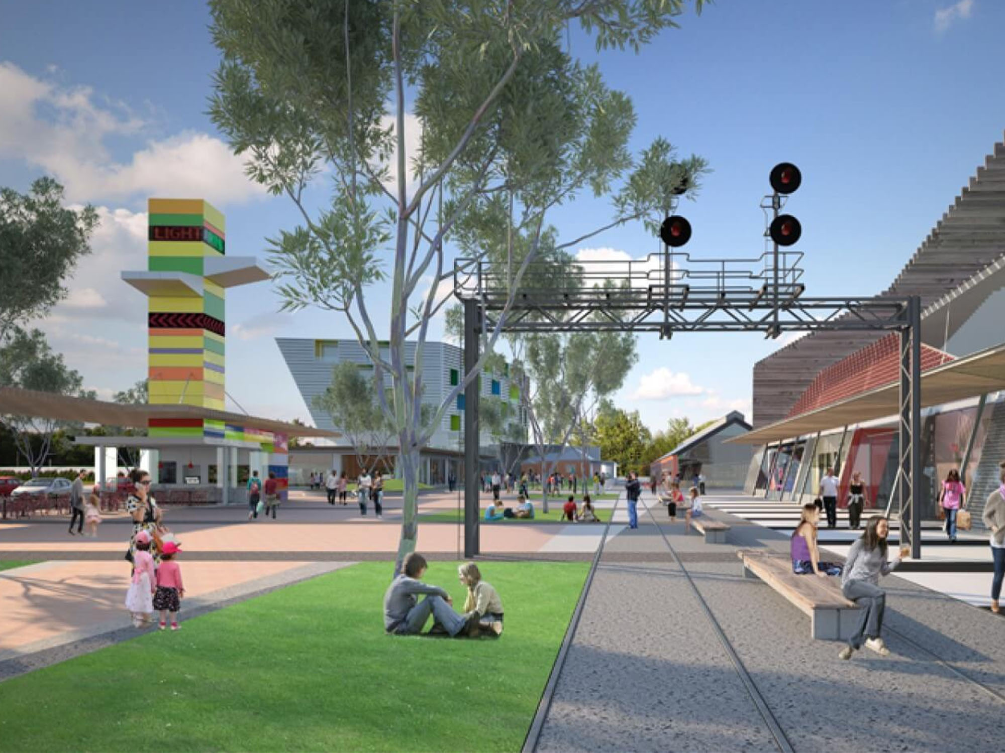 We incorporated a major new pedestrian promenade along the former rail alignment and this linear public space connected a proposed new public square with the buildings of the former heritage rail precinct. Though we met opposition to this core idea, we successfully advocated for the retention of the rail buildings and wove them into the urban design as signature place-making elements. The iconic red-brick, Victorian-era structures subsequently became the first built transformations within the redevelopment and were renovated into much loved, vibrant hospitality venues with retained rail-industrial character.